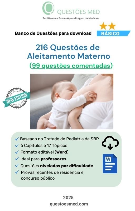 - Banco de Questões MED Básico contendo 216 Questões sobre Aleitamento Materno no formato Word, organizado segundo o Tratado de Pediatria da SBP (2022).