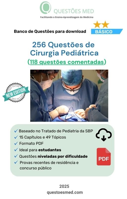 - Banco de Questões MED sobre Cirurgia Pediátrica no formato PDF, organizado segundo o Tratado de Pediatria da SBP (2022), contendo 256 questões sendo 118 comentadas.