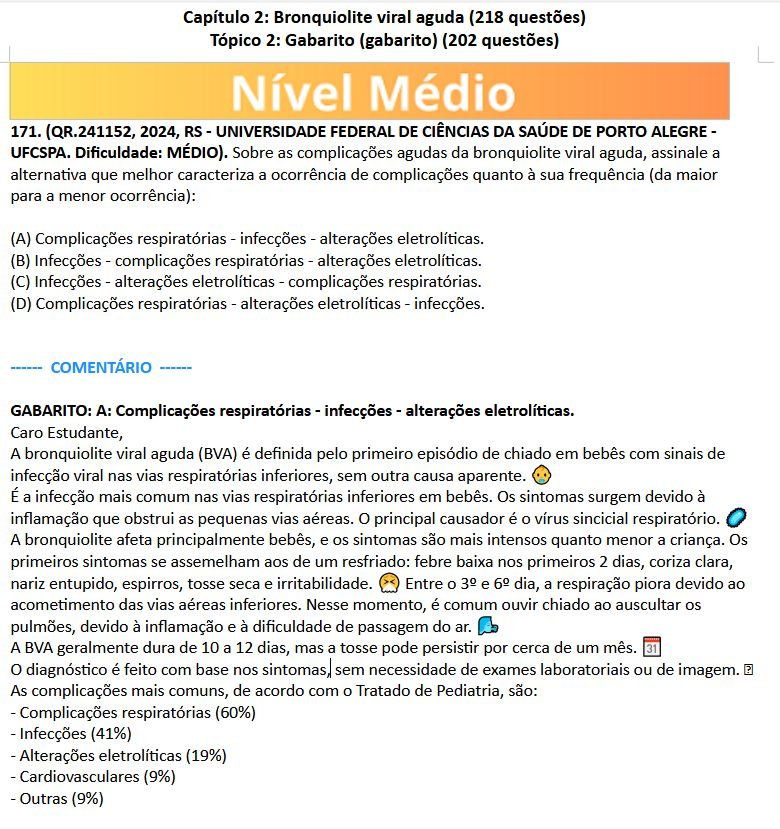 - Banco de Questões MED sobre Pneumologia Pediátrica no formato PDF, organizado segundo o Tratado de Pediatria da SBP (2022), contendo 515 questões sendo 299 comentadas.