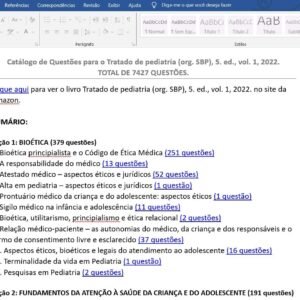 - 7.000 (sete mil) Questões de Pediatria: Catálogo Completo em Formato Word (DOCX)