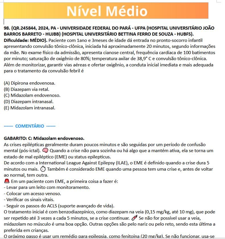 - Banco de Questões Premium de Emergências Pediátricas no formato Word, organizado segundo o Tratado de Pediatria da SBP (2022).