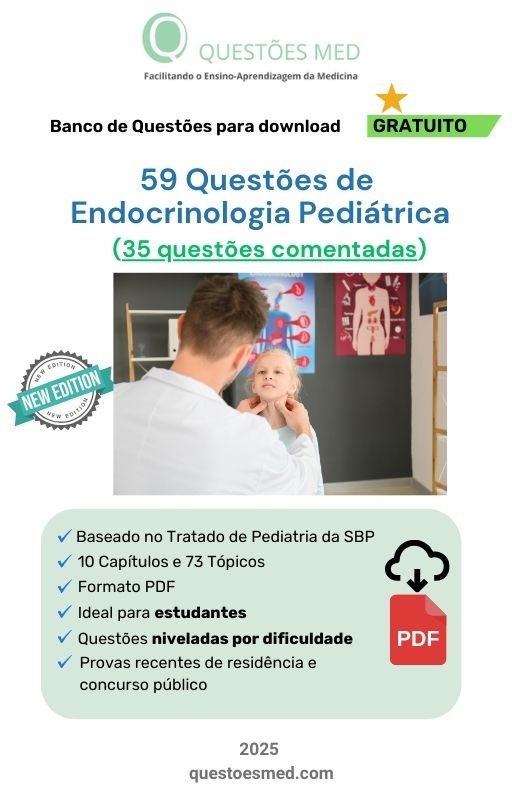 Banco de Questões MED Gratuito de Endocrinologia Pediátrica no formato PDF, organizado segundo o Tratado de Pediatria da SBP, contendo 59 questões sendo 35 comentadas.