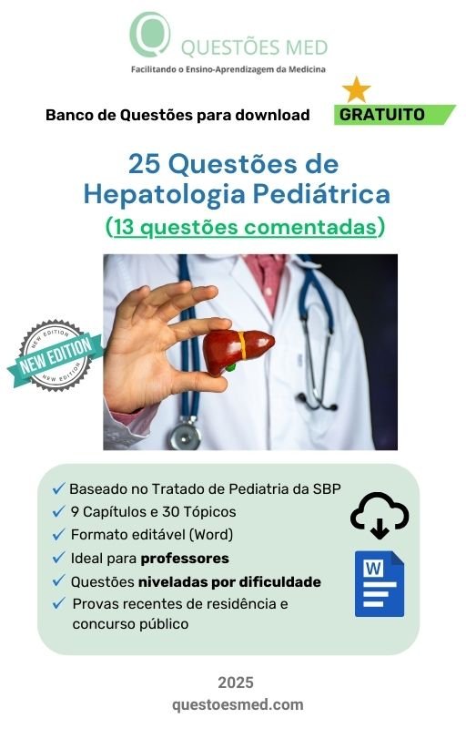 - Banco de Questões MED sobre Hepatologia Pediátrica no formato Word, organizado segundo o Tratado de Pediatria da SBP (2022), contendo 25 questões sendo 13 comentadas.