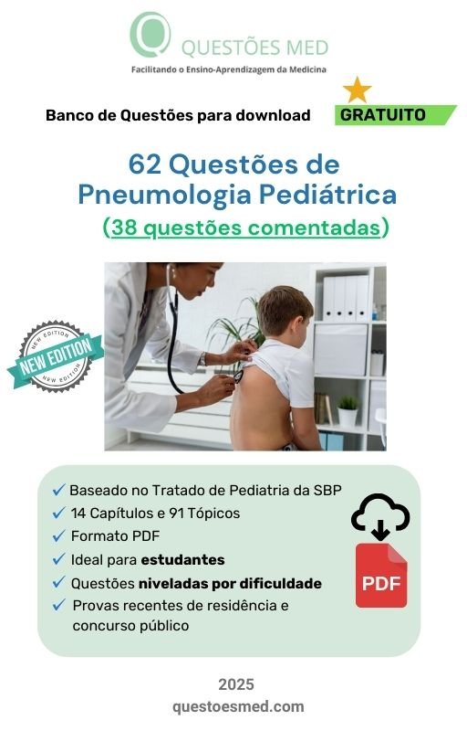 - Banco de Questões MED Gratuito sobre Pneumologia Pediátrica no formato PDF, organizado segundo o Tratado de Pediatria da SBP (2022), contendo 62 questões sendo 38 comentadas.
