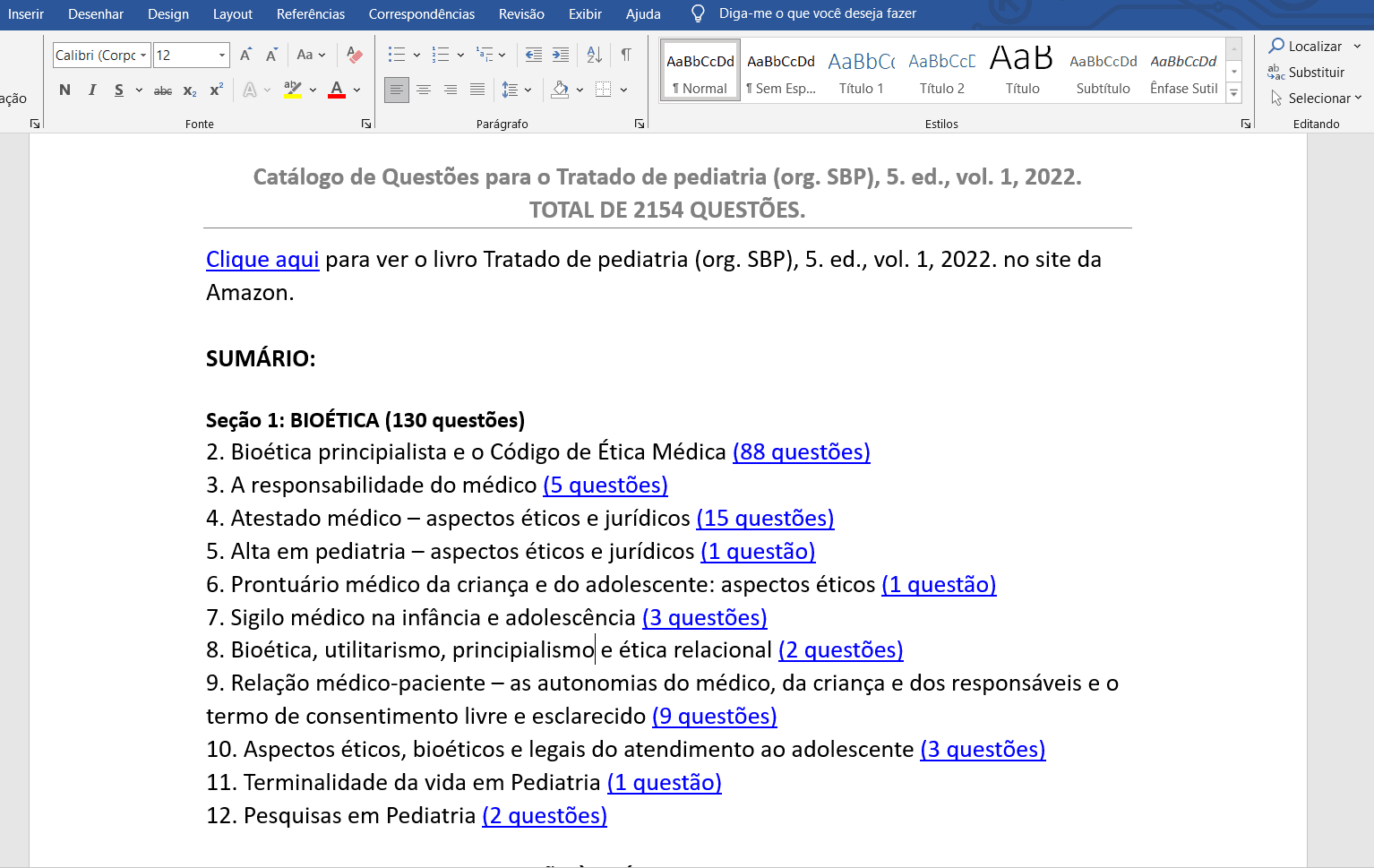 Esse Catálogo Word foi criado para ser uma ferramenta indispensável para professores de pediatria. Otimize e aprimore sua prática docente. Reduza o tempo de elaboração de provas e avaliações.