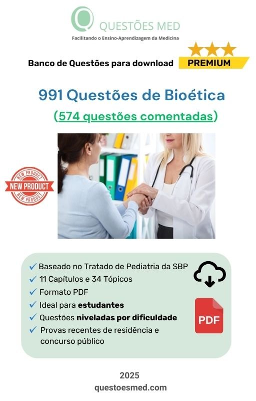 - Banco de Questões MED sobre Bioética no formato PDF, organizado segundo o Tratado da SBP (2022), contendo 991 questões sendo 574 comentadas.