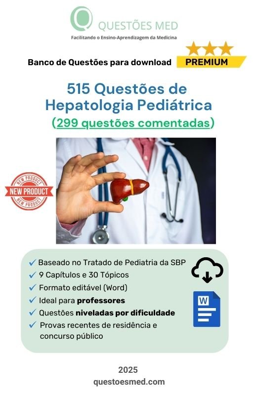 - Banco de Questões MED sobre Hepatologia Pediátrica no formato Word, organizado segundo o Tratado de Pediatria da SBP (2022), contendo 515 questões sendo 299 comentadas.
