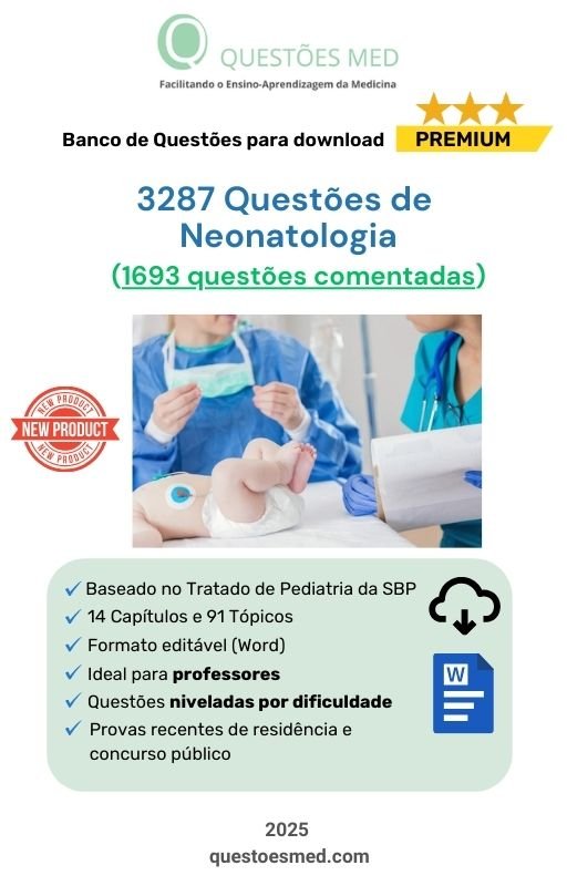 - Banco de Questões Premium de Neonatologia no formato Word, organizado segundo o Tratado de Pediatria da SBP (2022).