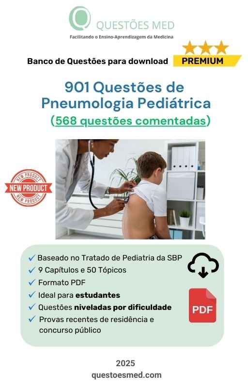 - Banco de Questões MED sobre Pneumologia Pediátrica no formato PDF, organizado segundo o Tratado de Pediatria da SBP (2022), contendo 901 questões sendo 568 comentadas.