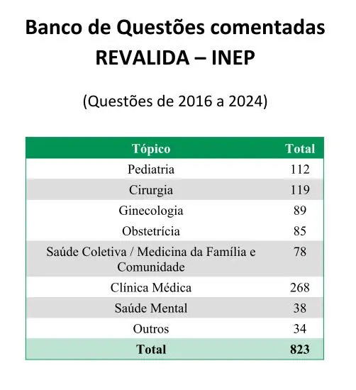 Somos especialistas em Bancos de Questões comentadas para toda a comunidade médica (estudantes, professores e profissionais). Com este e-book, você conseguirá estudar com foco, estratégia e profundidade — aumentando consideravelmente suas chances de revalidar seu diploma e poder atuar como médico no Brasil.