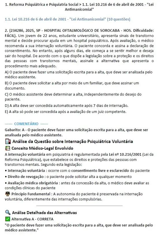 - Veja a versão completa com 1000 questões comentadas de Psiquiatria aqui.
